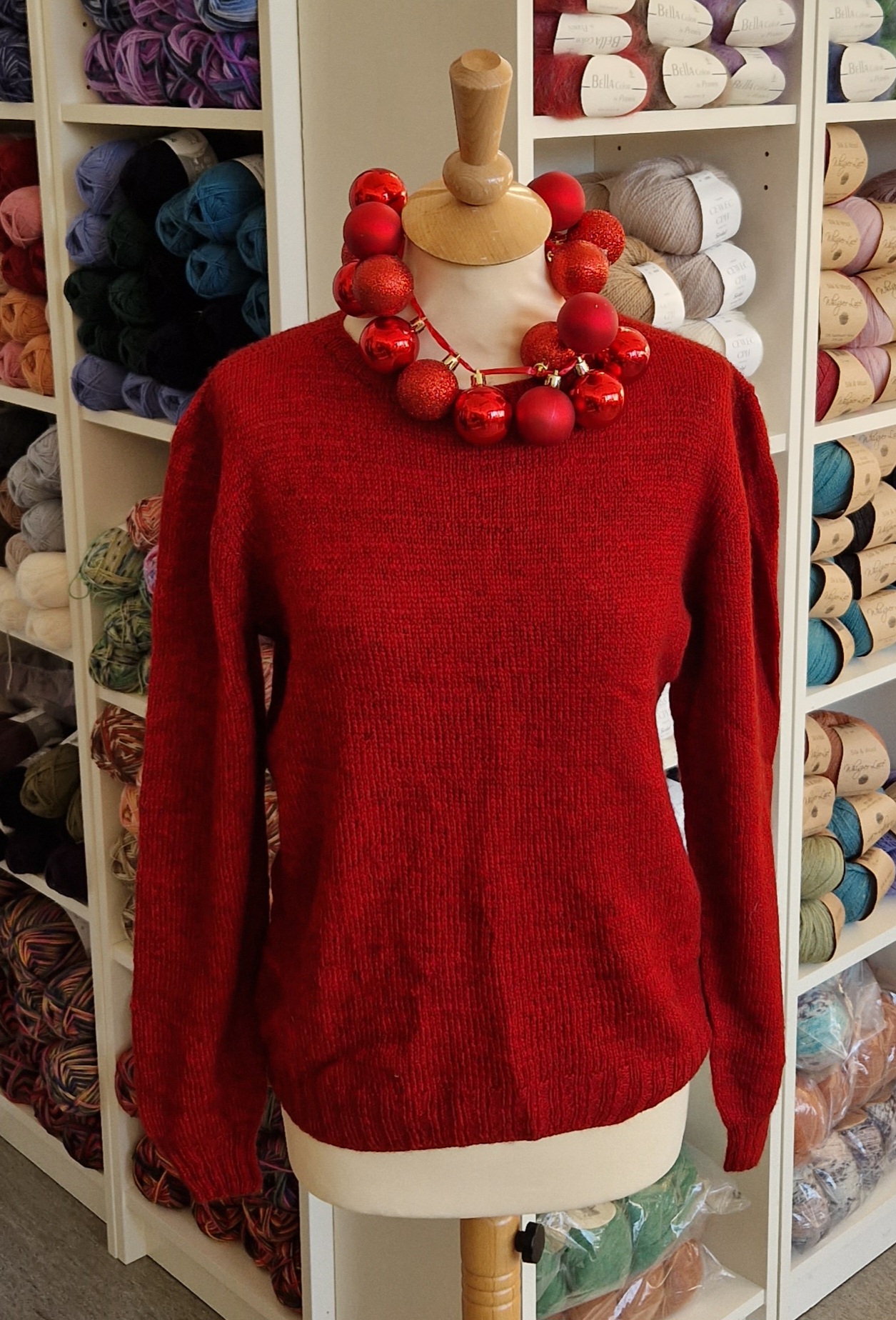 Håndstrikket av garn som inneholder 19 % jak, 37 % bambus, 36 % merinoull & 8 % polyamid.
