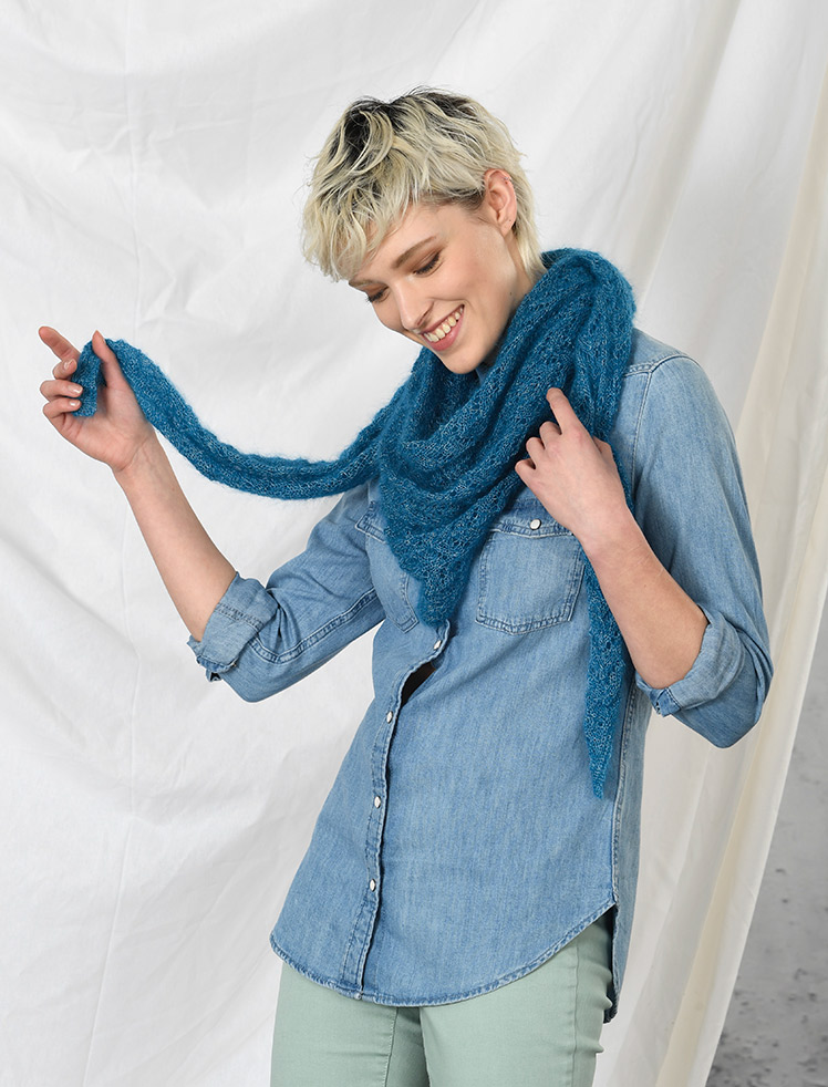 Beskrivelse Pakke med garn og norsk oppskrift på nydelig, hullmønstret sjal av 3 nøster Algasoie som består av 70 % alpakka og 30 % silke. Velg om du vil ha digital oppskrift eller utskrift i pakken. |